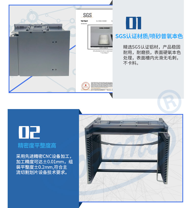 产品简介: 产品编号:DSF20B38-000-R0;新款8寸25槽自动落锁提篮整体采购6063铝型材经过cnc精密加工、打磨、表面氧化处理、组装校验等工序精制而成,整体精密度平整度高符合主流半导体设备技术要求,自动落锁+旋转档杆双重保护周转存储晶圆更安全,产品表面槽内光滑无毛刺,不卡料。我司通过ISO9001质量管理体系认证,产品品质更有保障,马上咨询我们获取产品资料和优惠报价吧!